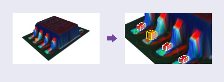 ● 3D技術(shù)與顏色特征算法的完美結(jié)合,高效檢測(cè)元件及焊點(diǎn)的不良