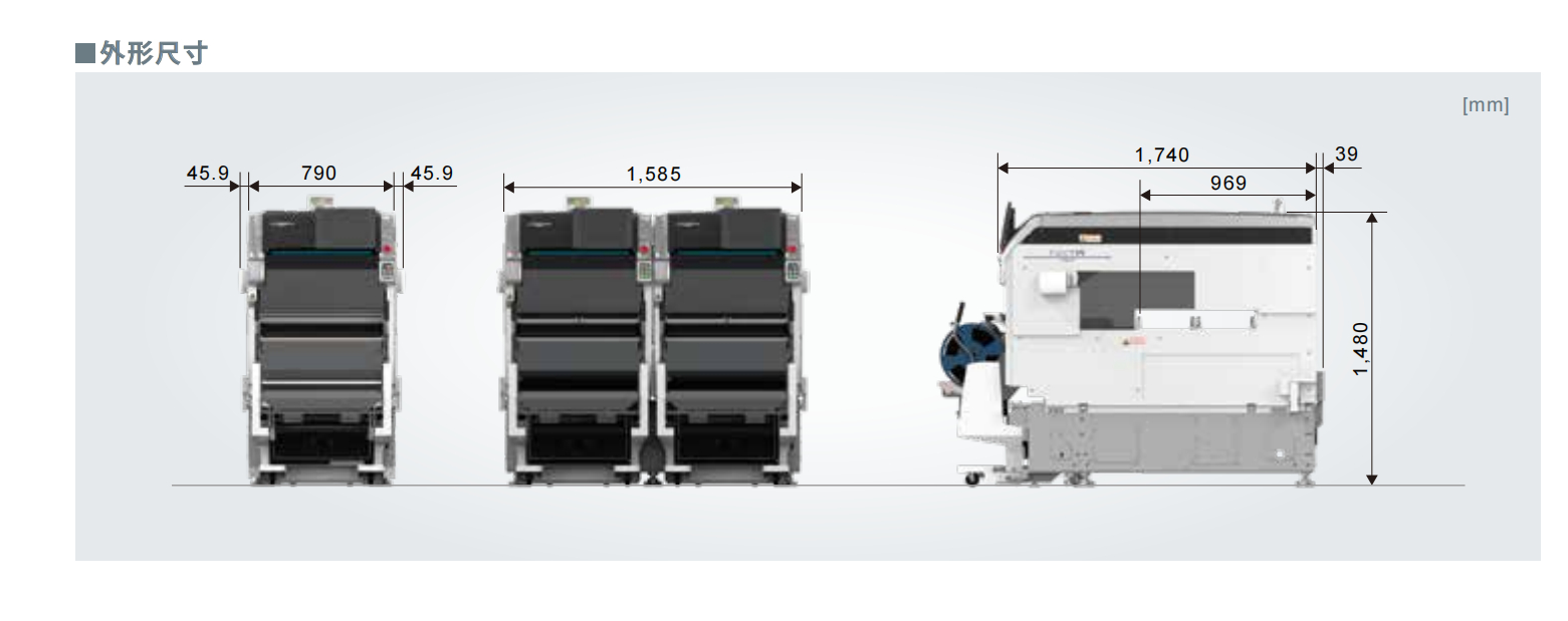 可根據電路板尺寸以及要搭載的供料器數量從2種模組中進行選擇。