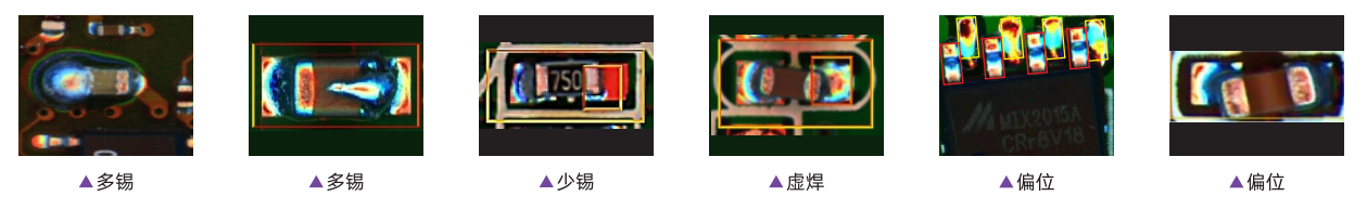 檢查項目 | 元件類 | 錯件,缺件,極性,偏位,翻件,破損,IC彎腳,異物,立碑等 | |||